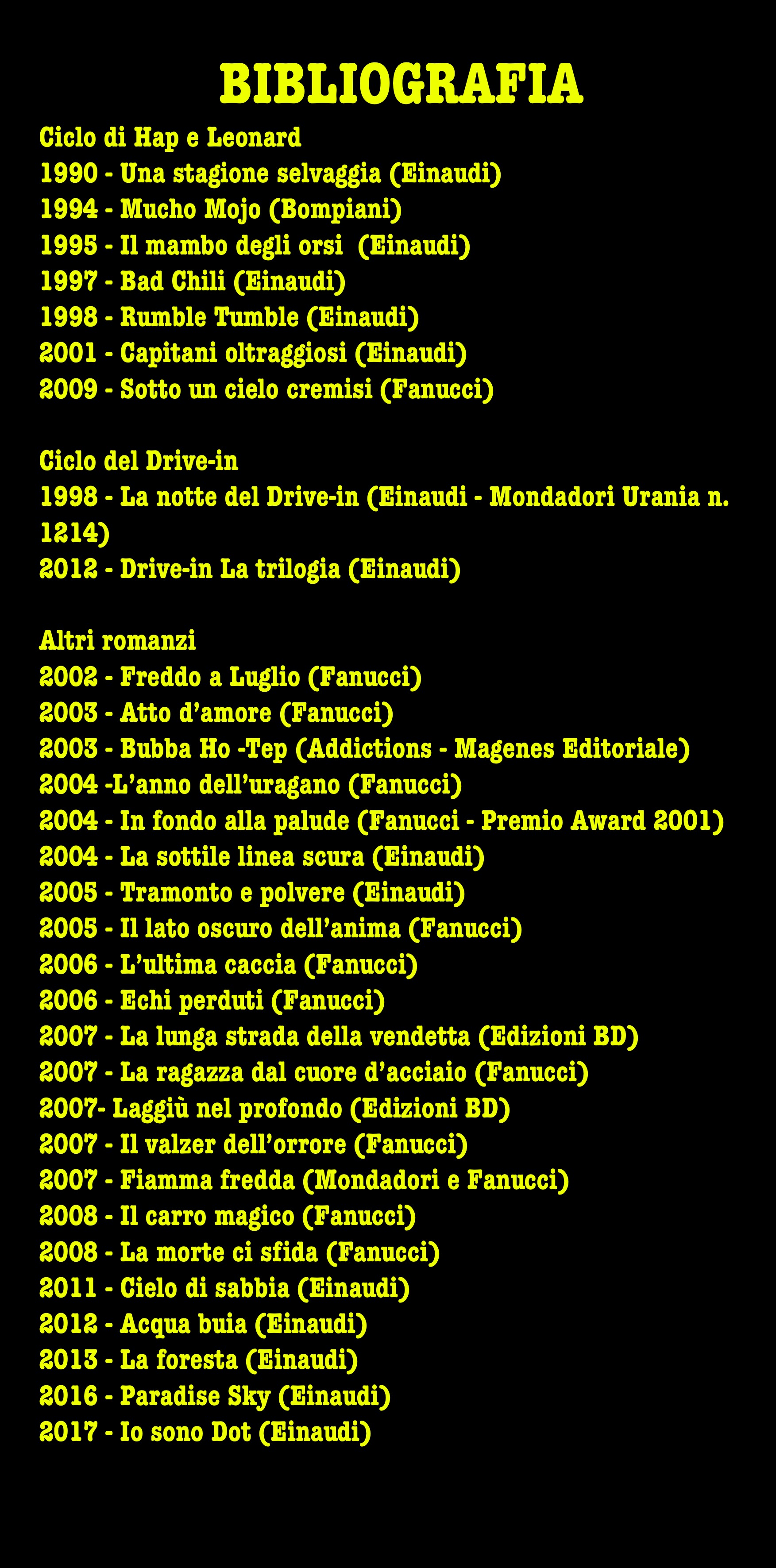 Mi baso sulla realtà, ma non ci sono poi così tanti delitti dalle mie parti, perciò alcuni devo inventarli. La violenza è un elemento dei miei libri e ovviamente c’è in questa parte del Paese, come ovunque (nda Lansdale vive in Texas in un luogo dal nome impronunciabile: Nacogdoches).