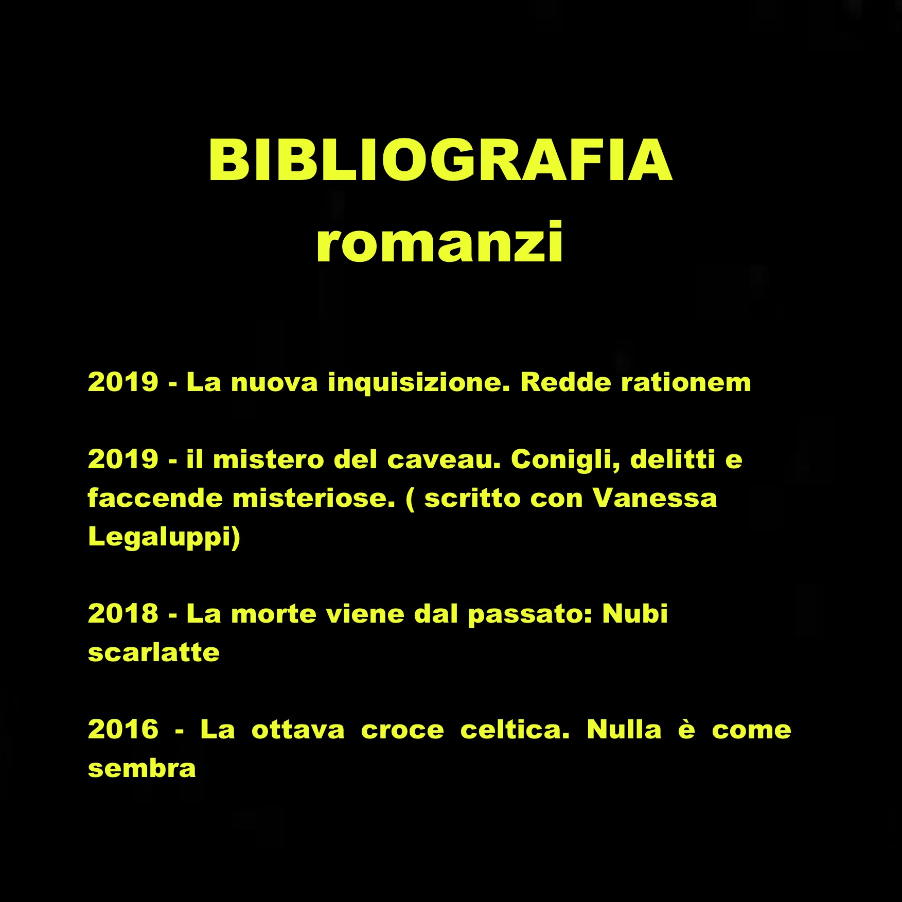 Il desiderio di scrivere è cresciuto in me di pari passo con la mia grande passione per la lettura. Durante l’adolescenza componevo poesie e coltivavo la segreta ambizione di scrivere un libro di avventure. Gli impegni lavorativi hanno però completamente assorbito il mio tempo e solamente alcuni anni fa sono riuscito a concretizzare il mio sogno e a realizzare il primo thriller, intitolato “La ottava croce celtica – Nulla è come sembra”.