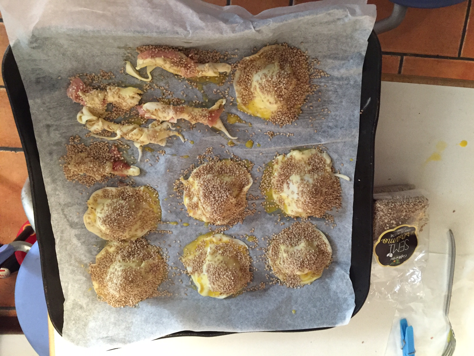 IMG_1779Mettete il tutto in forno a 220° per una decina di minuti o fin quando non saranno dorati bene.