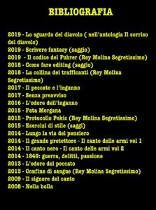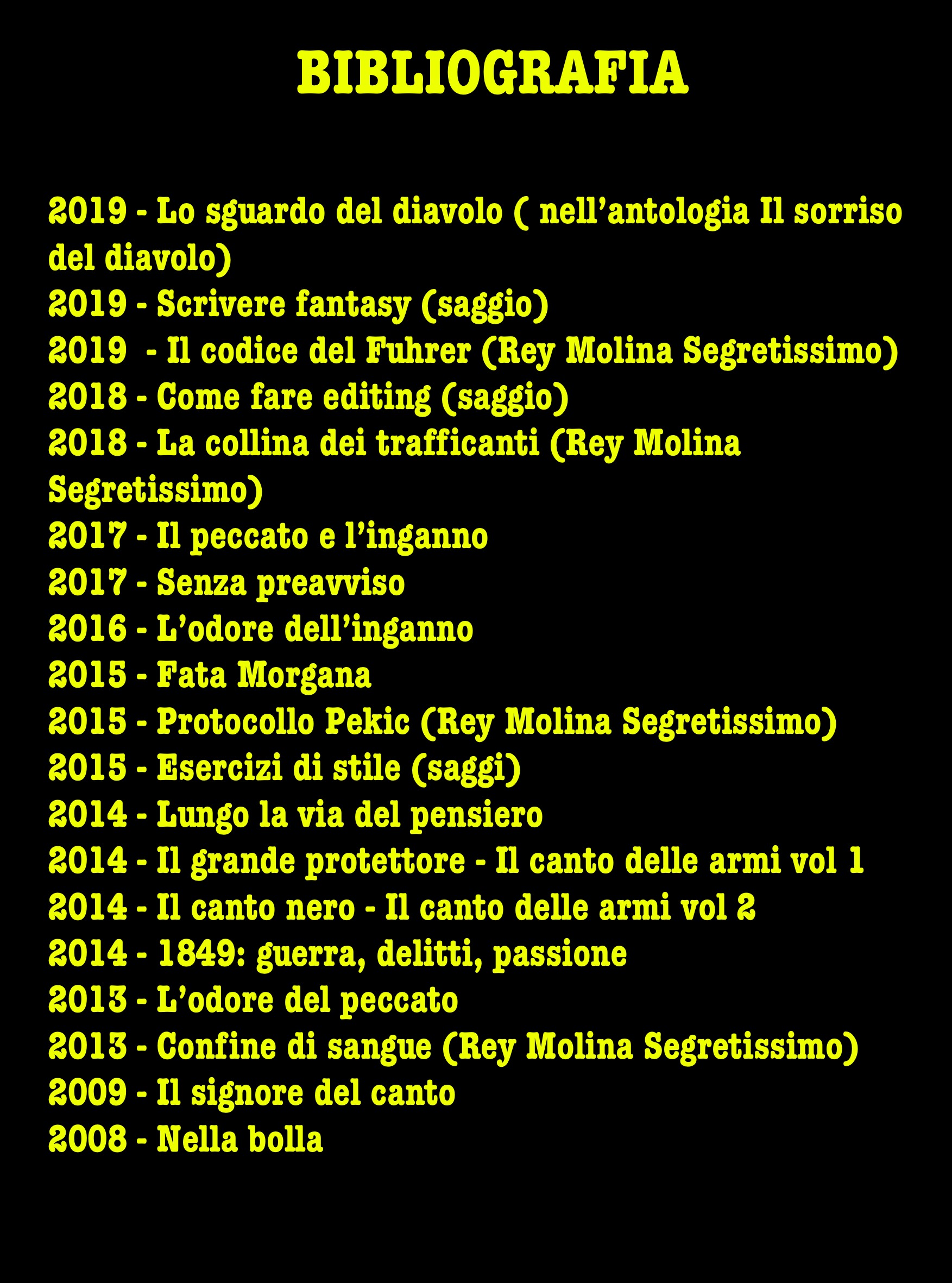 Artista a 360°, compositore e autore musicale, giornalista, saggista, giallista, collabori con la rivista Writers Magazine, con i Gialli Mondadori, esordisci con il romanzo Nella bolla, per poi passare a un fantasy e vincere nel 2013 il prestigioso premio Tedeschi con “L’odore del peccato”, cominci una serrata collaborazione con Segretissimo con lo pseudonimo Rey Molina, fino ad arrivare all’ultimo romanzo breve “Lo sguardo del diavolo”, pubblicato con i gialli Mondadori nell’antologia “Il sorriso del diavolo”, in cui ti cali nei panni del serial killer Jeffrey Dahmer, vuoi parlarci di questa tua ultima esperienza?