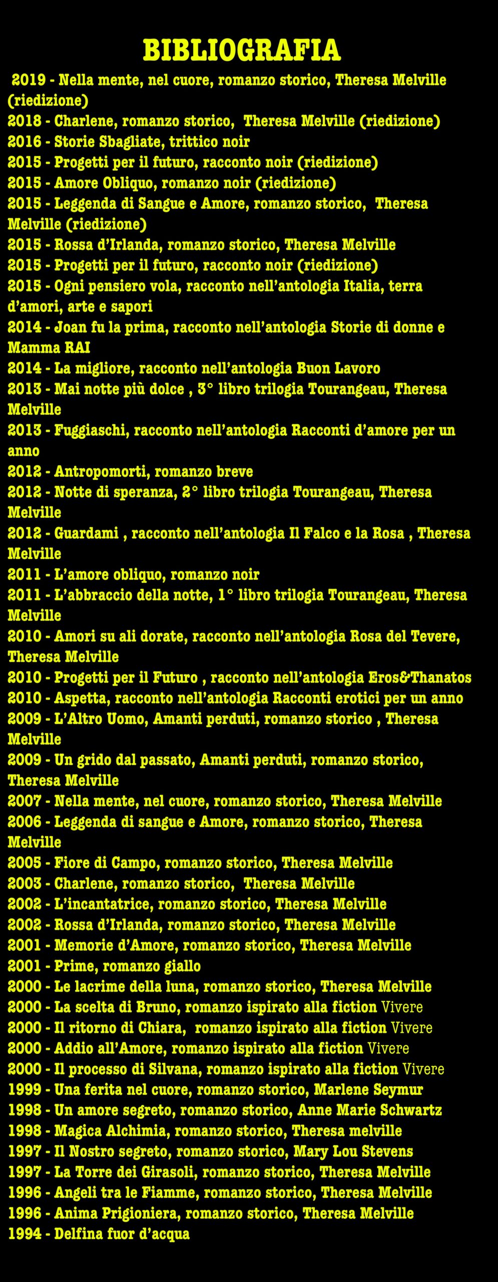 Mi hanno spinto la passione per il noir e l’urgenza di spaziare oltre i canoni del romance storico che, dopo vent’anni di scrittura, cominciavo a percepire come una limitazione. Troppo spesso capitava che il romanticismo facesse le spese della mia esigenza di realismo, così, poiché la contaminazione non è sempre gradita al pubblico del romance, ho deciso di diversificare, firmando con lo pseudonimo di Theresa Melville i romance storici, e col mio nome i gialli e i noir. Cimentarmi con il noir all’inizio non è stato facile: ho dovuto imparare un nuovo linguaggio narrativo che si adattasse a trame per me insolite, ma sono stata molto fortunata ad avere come mentore il compianto Sergio Altieri, un autore straordinario, generoso, di grande talento e sensibilità. Lui mi ha “scoperta” come autrice noir e mi ha guidata nelle prime sperimentazioni. Il percorso è stato complesso, ma fondamentale nella mia crescita professionale.