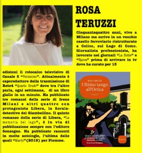 Giornalista professionista, esperta di cronaca nera, caporedattrice del programma di Crime in onda su Rete4 Quarto grado, esordisci con un racconto pubblicato nella raccolta Crimine Milano giallo-nera, il secondo, “Requeiscat,”nel 1996 viene segnalato dalla giuria del Premio Scerbanenco, poi seguono i romanzi “Nulla per caso” (Sperling & Kupfer), “Il segreto del giardiniere”e“Il prezzo della bellezza,”in cui incontriamo la protagonista Irene Milani, cronista di nera dotata di uno speciale dono , la capacità di sentire il dolore degli altri. Poi nel 2016 esci con Sonzogno con il primo volume della serie “I delitti del casello”, che vede come protagonista Libera, una splendida quarantaseienne che si mantiene creando bouquet di nozze nella sua casa bottega, un vecchio casello ferroviario trasformato. Come è nato il progetto?